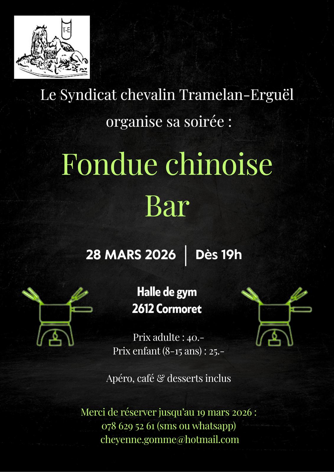 Samedi 28 mars 2026 : Fondue chinoise & bar, Halle de gym, 2612 Cormoret